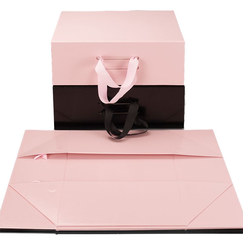 לוגו מותאם אישית יוקרה תיבת מתנה מגנטית גדולה קרטון ורוד סרט קיפול קשיחות